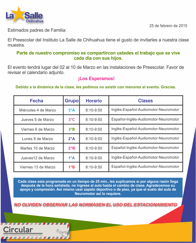 Se adjunta invitación de Clases Muestra para este ciclo escolar (click para descargar), les pedimos abrir el archivo y tomar en cuenta los horarios establecidos. Nos dará mucho gusto contar con su presencia.
